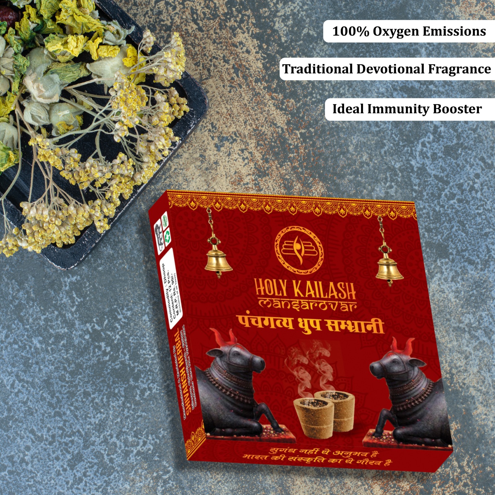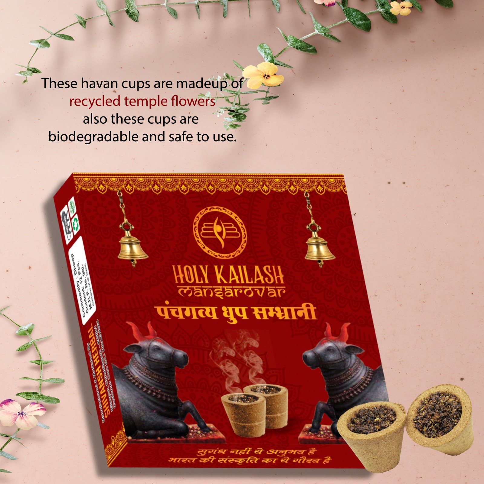 Holy Kailash Mansarovar Build Your Health With The Medicinal Properties of our Panchagavya Sambrani Cup With 100% Oxygen Emissions And Benefit of Vedic Herbs our Panchagavya Sambrani Cups are the Ideal Immunity Booster. Sambrani Made from Flowers and Herbs. This Sambrani is made up of pure blend of recycled flowers. When Inhaled ,it Stimulates the Production of Serotonin in the Brain. Devotional,traditional, natural, long lasting Havan cups for home and pooja. These havan cups are madeup of recycled temple flowers also these cups are biodegradable and safe to use. You can use our sambrani cupsfor everyday pooja to enhance peace at your home and workplace.